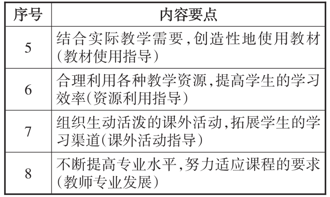 , E* P1 z/ G! Y, m( Z# ^表1 《义教课标》中“教学建议”的内容要点